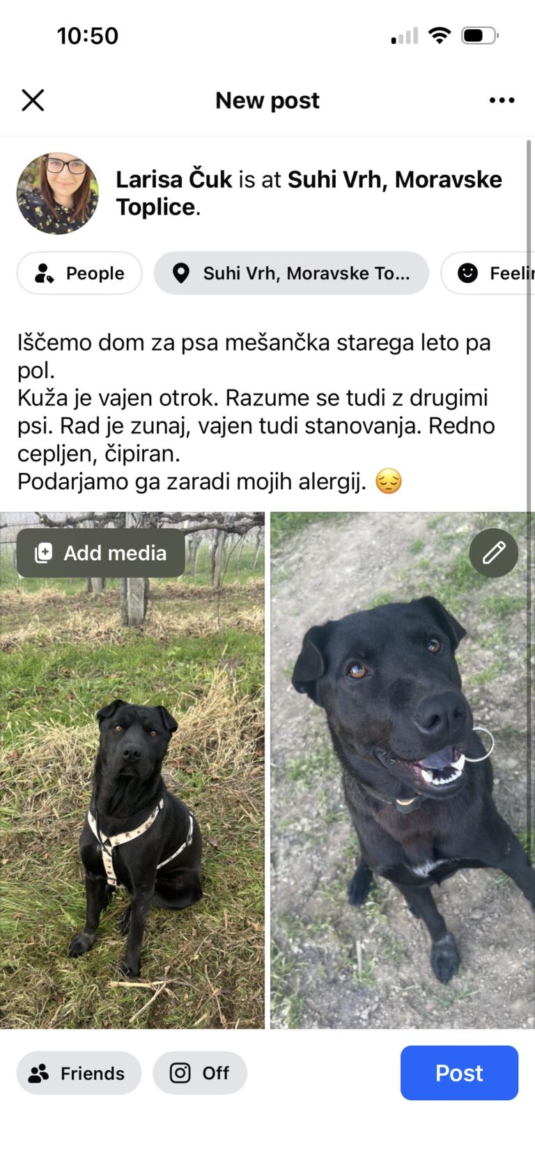 Iščemo dom za psa mešančka. Mama je Border Collie oče pa Shar pei. Skoten marca 2024. Ime mu je BALU. Kuža je...