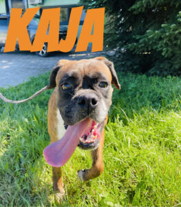 Kaja je čudovita 5 letna Nemška bokserka, ki si želi najti topli in ljubeč dom. je izredno prijazna, cartljiva in obožuje sprehode v naravi. Z drugimi psi se lepo razume. Je igriva in zvesta, ima pa tudi svojo nežno plat in bo vsekakor obogatila življenje novim lastnikom.